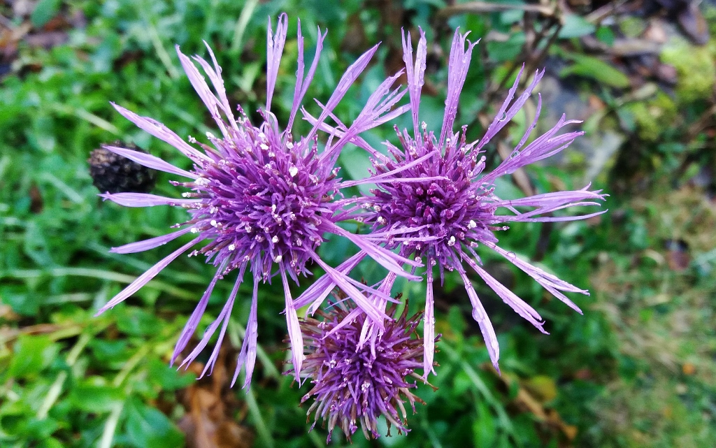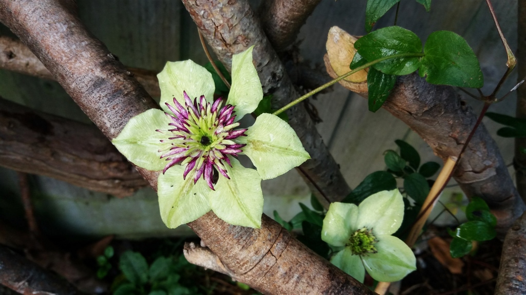 2. Here is this month's selection from Diane P. We have left to right - 'Aunty Anne's lovely chrysanthemum', Morina Longifolia, Clematis Florida Sieboldiana, and Centaurea Scabiosa or Common Knapweed. Whilst the chrysanthemum provides regular late colour, all the rest are flowering much later than usual. The clematis was only purchased a couple of months back but now has about 6 flowers!