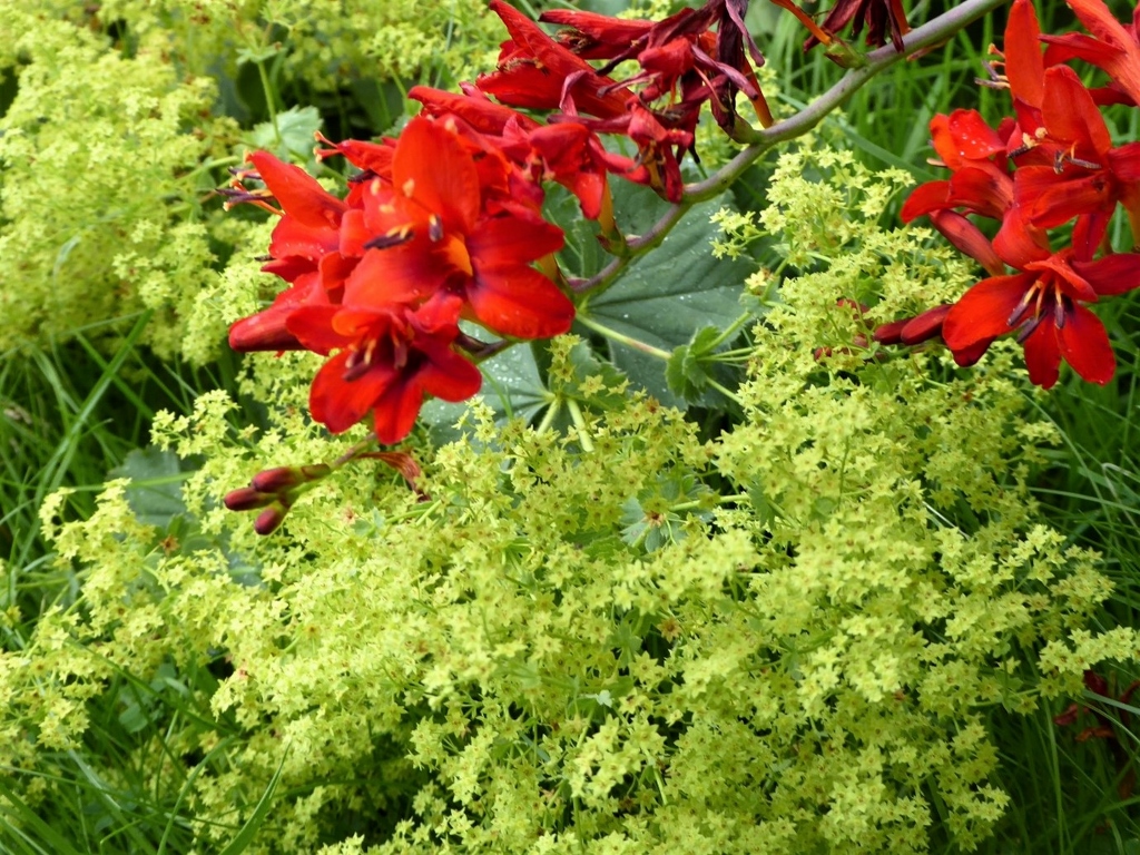 The colour combinations are Alchemilla mollis / Crocosmia “Lucifer” and Japanese anemone / Sedum.