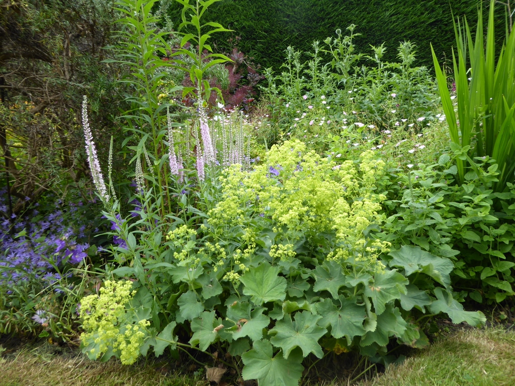 The other pictures are 1. Angel pelargonium "Roller's Echo" 2. Lysimachia punctata Helianthemum "Ben Fhada" 3. Veronica "Pink Tails"/Alchemilla mollis 4. Sisyrinchium & Centaurea "Silver Feather" 5. Hypericum "Hidcote" wonderful plant grows anywhere even deep shade. 6. Mixed foliage/geranium cinerarium"Laurence Flatman"